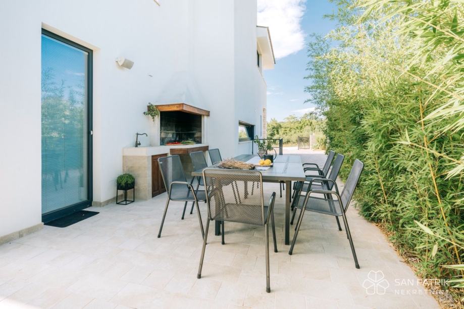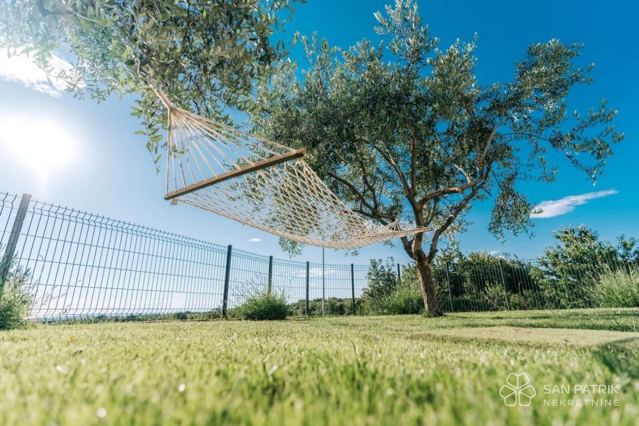 Vila može primiti 10 gostiju i smještena je na malom brežuljku s kojeg se pruža predivan pogled na more i zelenu zonu te se nalazi 10 km od mora i grada Poreča.