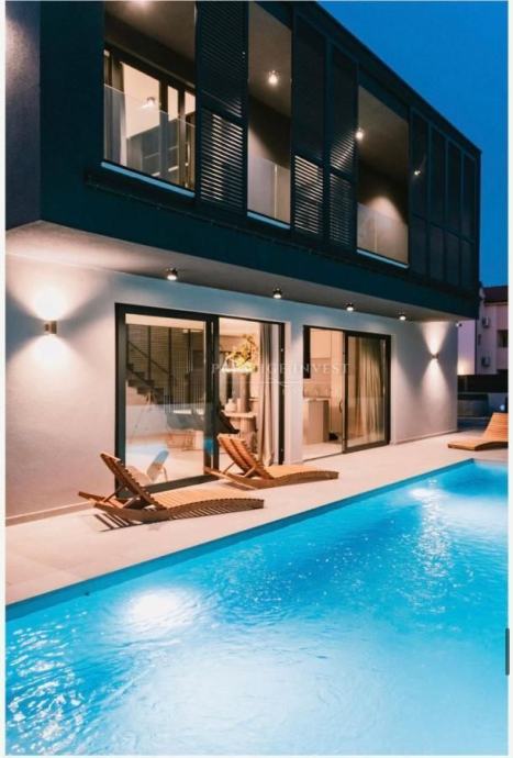 Ova moderna vila nalazi se na otprilike 350 metara od mora i u blizini grada Šibenika, nudeći savršenu kombinaciju modernog dizajna i života na obali.