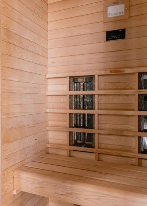 Na gornjem katu nalaze se tri spavaće sobe i dvije kupaonice, od kojih jedna ima vlastitu saunu.