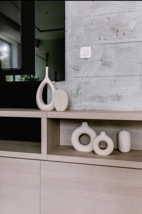 Smještena na gotovo 400m2 zemljišta, vila ima 190m2 dojmljivog interijera raspoređenog na dva kata.