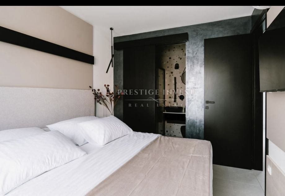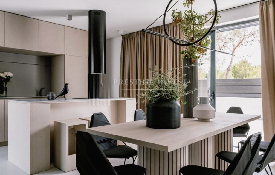 Prizemlje sadrži prostrani dnevni boravak s integriranim blagovaoničkim prostorom i otvorenim kuhinjskim konceptom, gostinjskim WC-om, spremištem i jednom spavaćom sobom s kupaonicom.