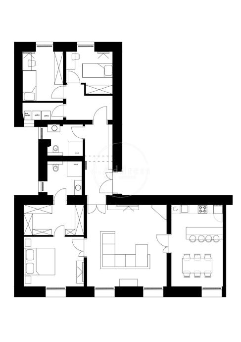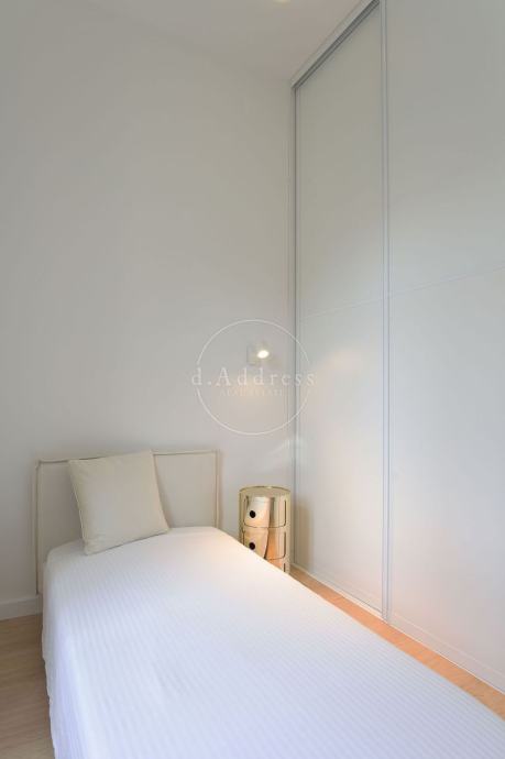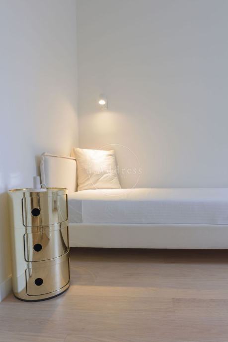 Stan se sastoji od ulaznog hodnika, kuhinje/blagavaonice i dnevnog boravka , dvije kupaonice, tri spavaće sobe i spremišta s vešerajem. Dvije manje sobe su hodnikom odvojene od ostatka stana zbog tišine i privatnosti,a master spavaća soba se nalazi odmah uz dnevni boravak, i ima veliki walk in ormar rađen po mjeri te svoju vlastitu kupaonicu opremljenu tušem i wc-om.