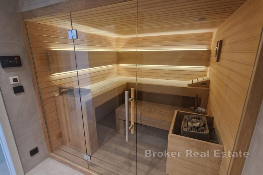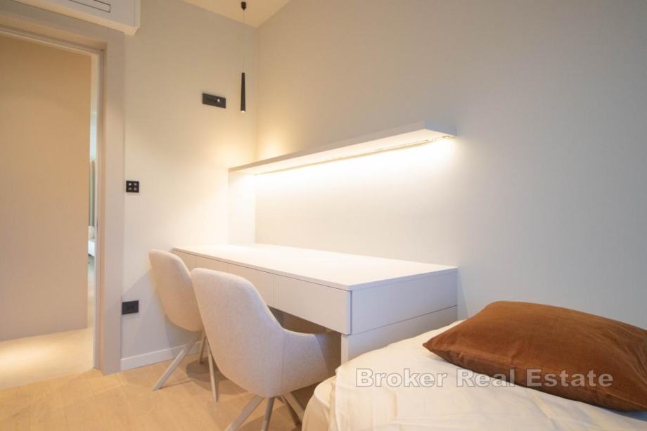Dizajnersko uređenje nekretnine, klimatizacija koja se odvija putem Daikin dizalica topline s pripremom tople vode i podnim grijanjem, sustav pametnog stana preko kojeg se omogućuje paljenje svijetla, roleta, upravljanje parlafonom i klimatizacijom, te mnogobrojne pogodnosti nekretnine, čine ovaj stan idealnim za život.