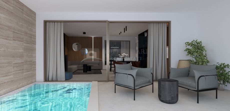 Dizajnerski stan u prizemlju s bazenom i morem u prvom planu – Novogra (prodaja)