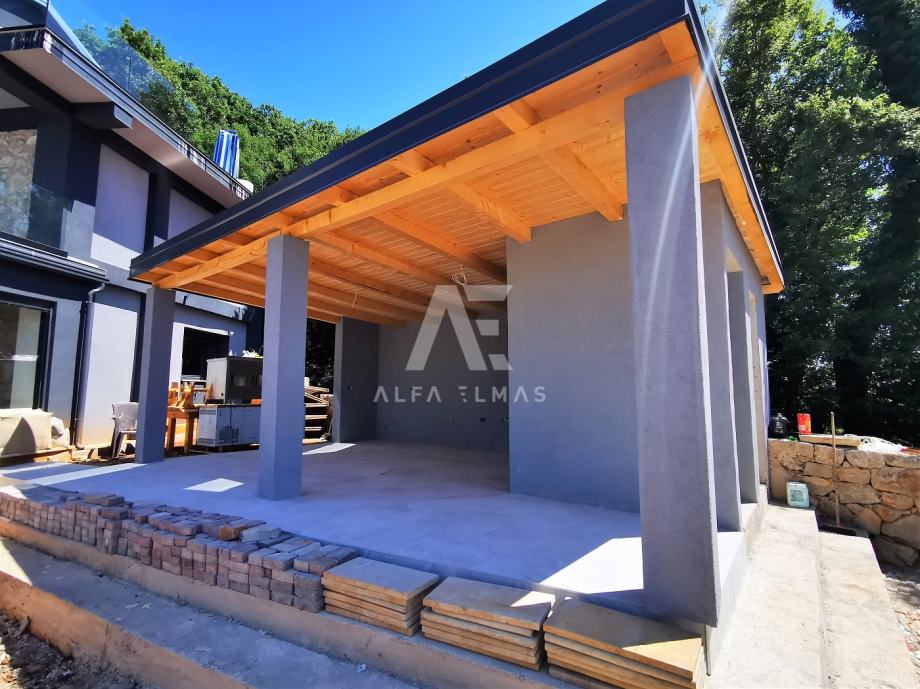 Na uređenoj okućnici nalaze se dva parkirna mjesta, zidani roštilj te prostrana vanjska ljetna kuhinja – idealno mjesto za opuštanje i druženje.