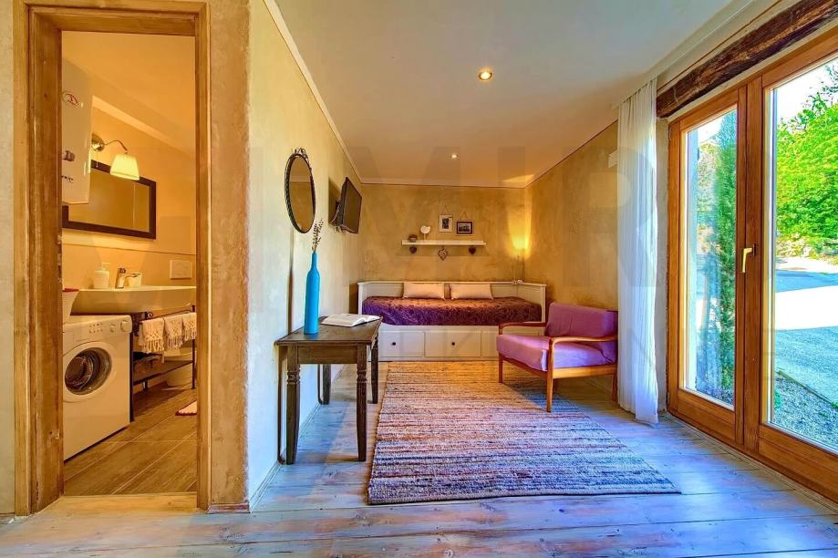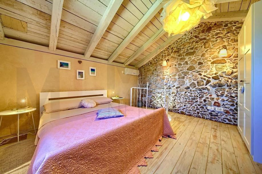 Otok Krk, Dobrinj u ponudi je nova mediteranska dvojna kuća sa lijepo uređenom okućnicom. Kuća zauzima stambenu površinu od 71 m2 i podijeljena je na prizemlje, prvi kat i visoko potkrovlje koji su povezani unutarnjim stepenicama. U prizemlju se nalaze dvije spavaće sobe i kupaonica, na prvom katu se nalazi prostor koji objedinjuje kuhinju, blagovaonu i dnevni boravak sa izlazom na veliku terasu od 10 m2 sa koje se pruža lijepi pogled na šumu. U potkrovlju je prostrana spavaća soba sa vlastitom kupaonicom. Pri gradnji kuće korišteni su kvalitetni građevinski materijali, kuća je klimatizirana, ima peć na drva, kvalitetnu PVC i drvenu stolariju, u potpunosti je opremljena kvalitetnom opremom i lijepim namještajem. Mirna lokacija puna zelenila i mediteranskog bilja ukupne površine okućnice od 450 m2, na kojoj se nalazi vanjski roštilj, ljetna kuhinja sa terasom za druženje, jacuzzi, sunčalište, dodatni objekt u kojem se nalazi sauna sa toaletom i prostor za dva parkirna mjesta. Kuća je u vlasništvu fizičke obveze i kod prijenosa vlasništva podliježe obračunu poreza na promet nekretnina u visini 3%. Prodavatelj jamči uredne vlasničke dokumente. Posjetite nas i pronađite kvadrat vašeg doma!