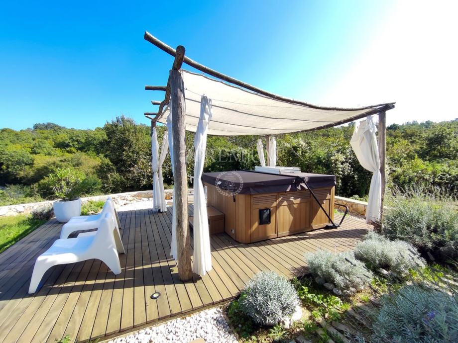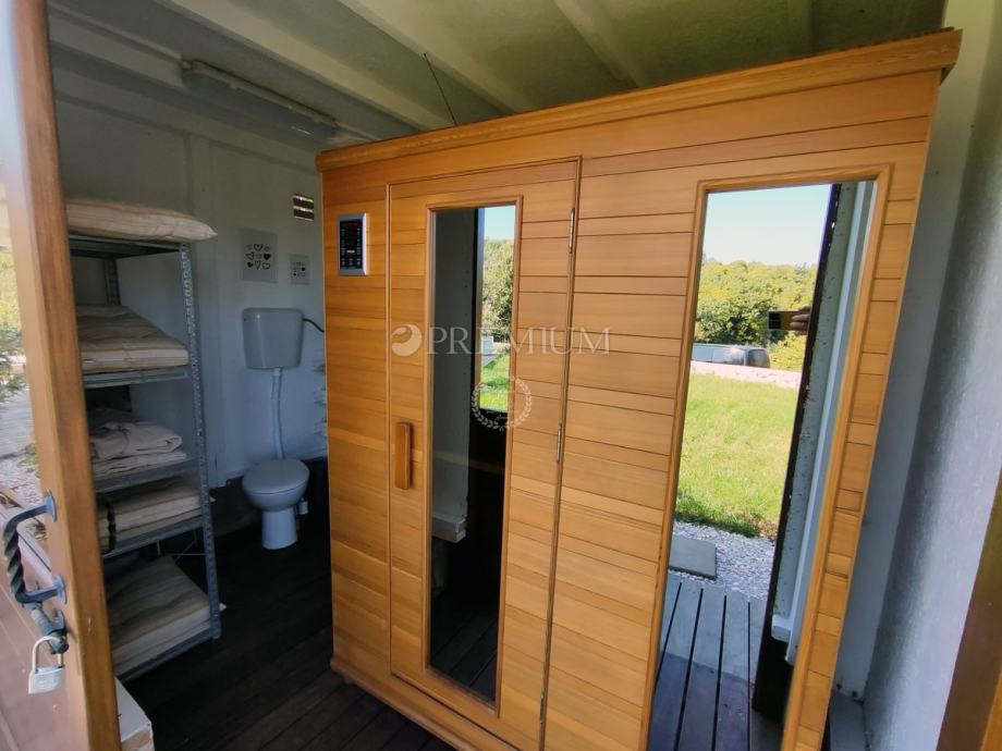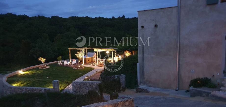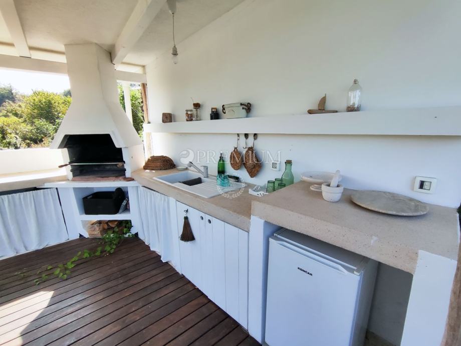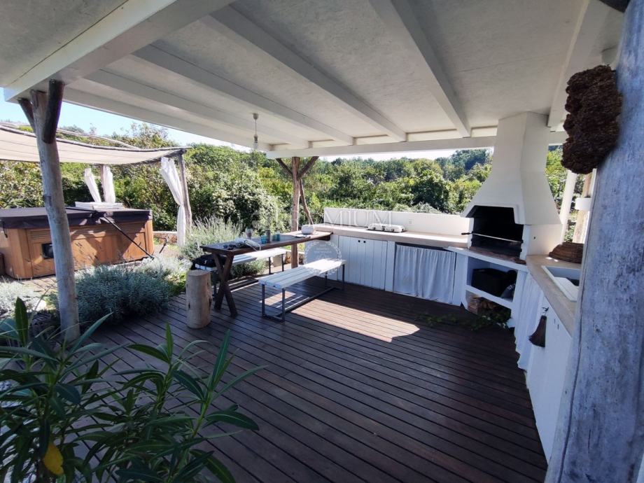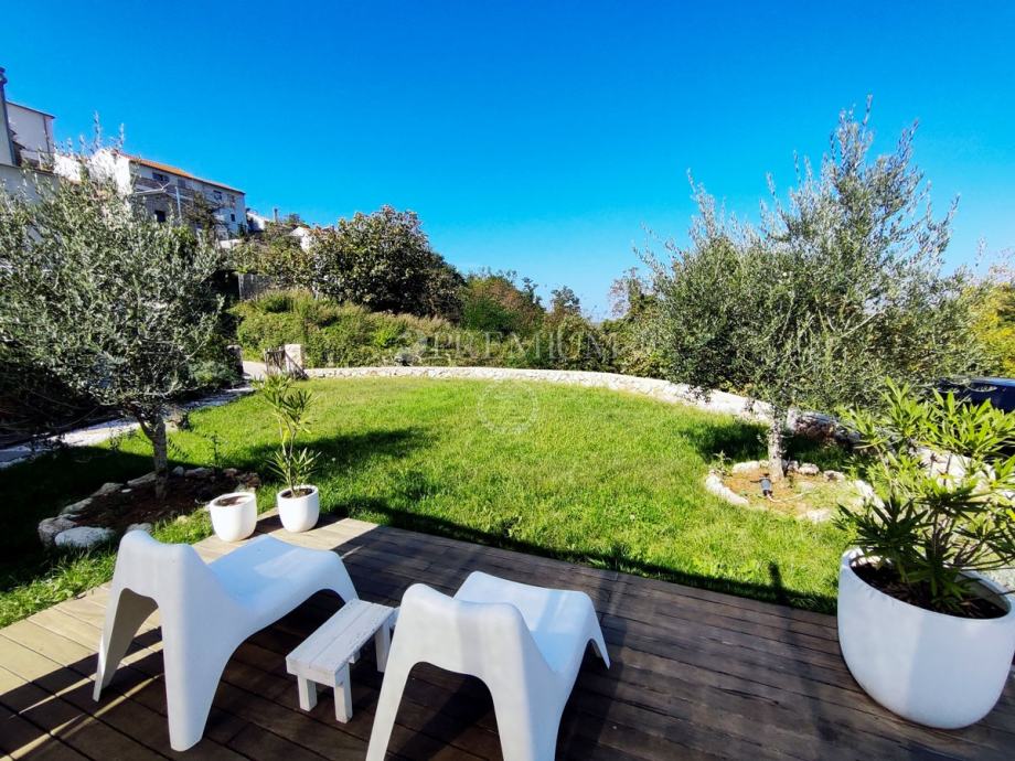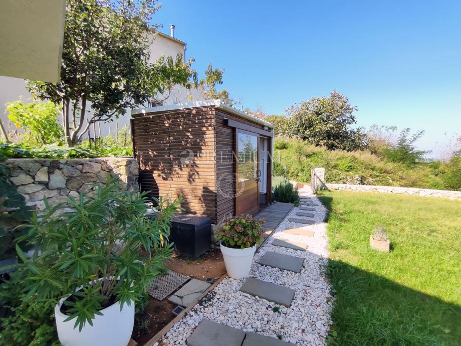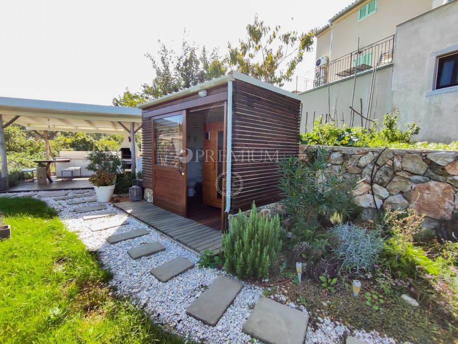 Kući pripada i lijepo uređena okućnica površine 450 m2, na kojoj se nalazi ljetna kuhinja s kaminom, jacuzzi i sauna, te 2 parkirna mjesta.