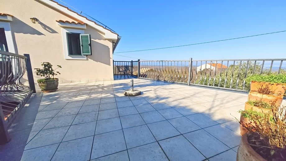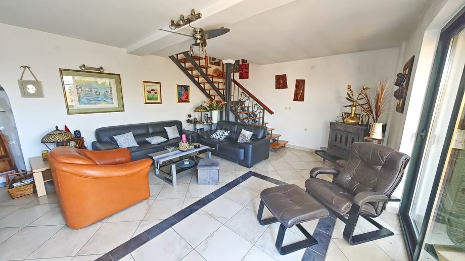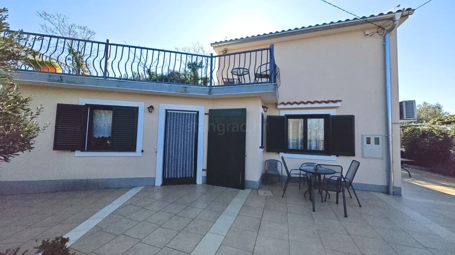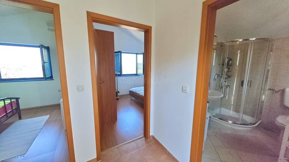 Gledajući strukturno, ovo je samostojeća kuća katnica. Lijepa kuća dobre konstruktivne kvalitete izgrađena je na sveukupno 2 funkcionalne etaže. Kuća obuhvaća ukupnu površinu od 120 m2. Ovom površinom su obuhvaćeni u prizemlju ulazni prostor, spremište, kuhinja s blagovaonicom, dnevni boravak s izlazom na veliku terasu. Na katu se nalaze 2 spavaće sobe, kupaonica i terasa s pogledom na more. Odlično održavana unutrašnjost nekretnine je u potpunosti uređena kvalitetnim namještajem i svom potrebnom tehničkom opremom. Na pripadajućoj, lijepo organiziranoj okućnici uz kuću je uređen prostor za grill.