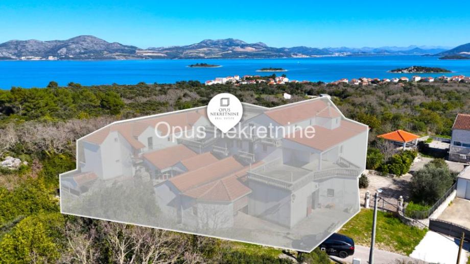 Prodaje se kuća brutto 1416,50 m2 na mirnoj lokaciji u mjestu Dol, 2 km od Sresera, na poluotoku Pelješcu. Kuća je u naravi trokatnica izgrađena u svrhu staračkog doma. Ima više apartmana, soba, prostrane zajedničke dnevne boravke, 10 kupaonica. Izvrsna prilika za starački dom. Veliki investicijski potencijal.