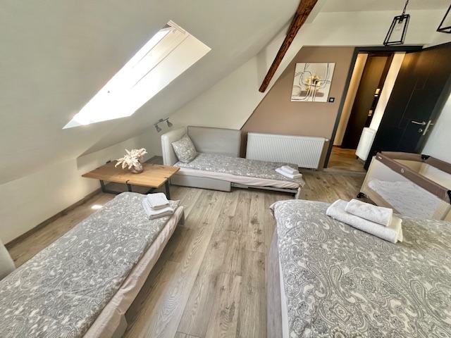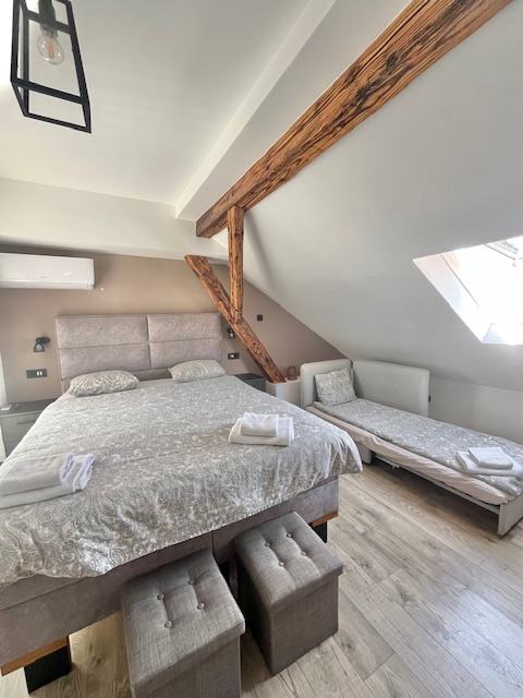 Novouredjeni stan na atraktivnoj lokaciji, velicine 79,60m2. Nalazi se na 4.katu s novim liftom u uredjenoj zgradi. Zgrada je iz 1938. godine, Zelena naljepnica, bez ostecenja u potresu. Sve instalacije su nove. Novi podovi, keramika, sanitarije, stolarija. Stan je podijeljen na manji i veci studio apartman. Jedan se sastoji od velike sobe, kuhinje i kupaone. Drugi se sastoji od velike sobe, manjeg radnog i garderobnog prostora, kuhinje s blagovaonom i kupaone. Stan ima ostavu. Kuhinje i kupaone su nove. Potencijalni kupac stan moze uz manje preinake koristiti kao jednu cjelinu, ili postojeci stan kao dvije manje cjeline. Takodjer, moguce je stan davati u kratkorocni/dugorocni najam, u kojem slucaju nisu potrebne dodatne investicije. Potpuni mir, bez buke. Vlastito brojilo struje, vode i plina. Klima, videonadzor, protuprovalna vrata. Vlasnistvo uredno, 1/1, bez tereta. Blizina Trga bana Jelacica, placa i svih potrebnih sadrzaja. Mogucnost povlastene stanarske karte u garazi na Langovom trgu. Iskljucivo ozbiljne ponude.