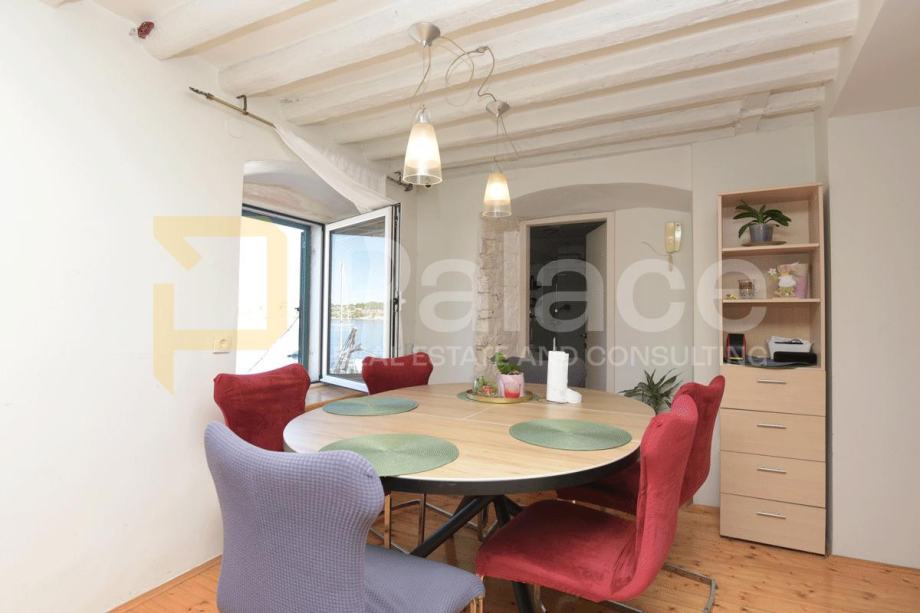 Ovaj stan smješten je na prvom katu povijesne zgrade u Dolcu, u prvom redu do mora, pa se iz stana pružaju slikoviti pogledi na more i grad.