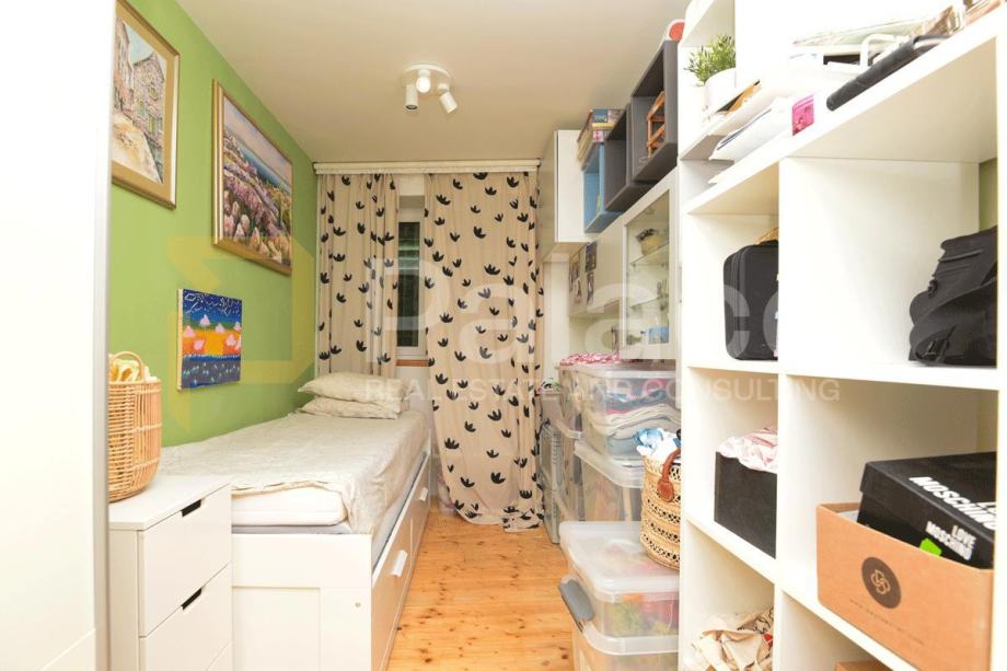 Pristup je sa strane mirne pješačke ulice, a stan se sastoji od osunčanog otvorenog koncepta kojeg čine kuhinja, i blagovaonica te dnevni boravak, tri spavaće sobe, jedne master i dvije manje, kupaonice s WC-om te radne sobe koja se može koristiti u razne namjene.