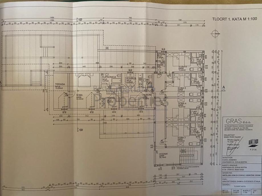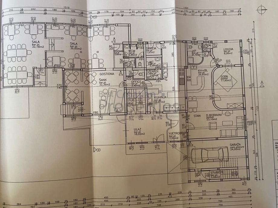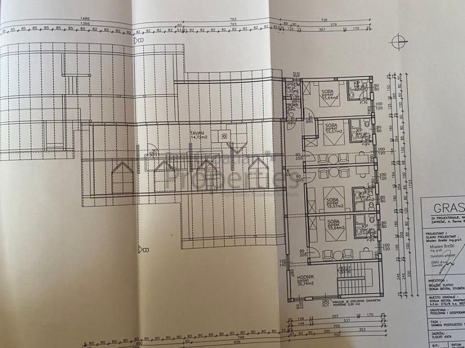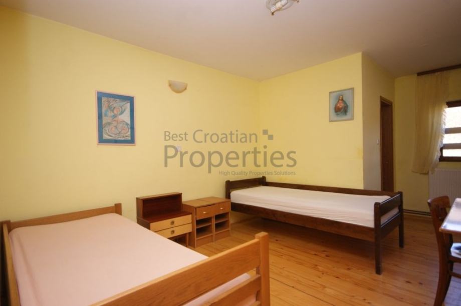 Ova poslovno stambena nekretnina brutto površine 483 m2 sagrađena je na zemljištu od 3.061 m2 na kojem se nalazi i gospodarska zgrada od 176 m2 (štagalj za konje).