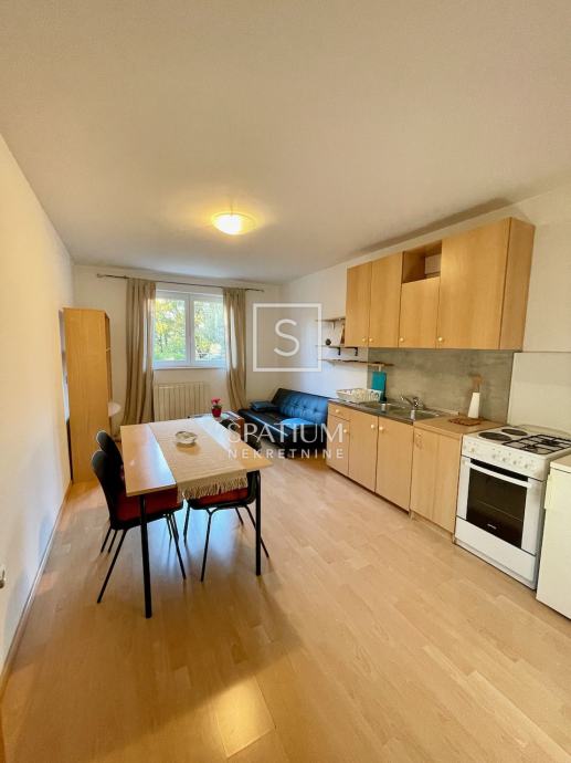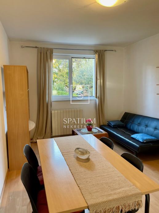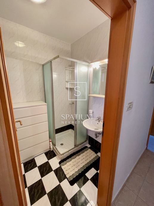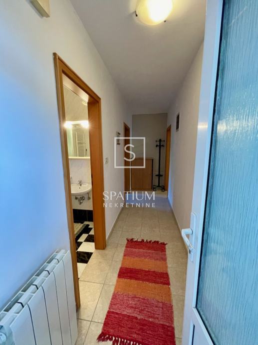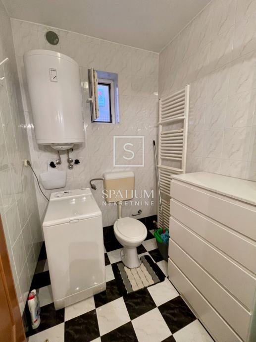DONJA DRENOVA, u ponudi je jednosoban stan u prizemlju odlično održavane samostojeće obiteljske kuće. Ulazni hodnik dijeli stan na spavaći dio u kojem je jedna prostrana spavaća soba i kupaonica dok je s južne strane glavna stambena prostorija koja dijeli funkciju kuhinje, blagovaonice i dnevnog boravka. Zahvaljujući jugozapadnoj orijentaciji prostor je ispunjen obiljem prirodnog svjetla. Kuća je u potpunosti renovirana 2012. godine i uredno je održavana što je vidljivo po fasadi, krovu te vanjskim stubištem. Stanu pripada dodatno spremište. Kuća ima zajedničku kotlovnicu s centralnim plinskim grijanjem. Zajednička okućnica ima roštilj i mjesto za parking. Preko puta kuće postoji dodatan prostor za parking. Kuća je etažirana, bez tereta i ima rješenje o izvedenom stanju.