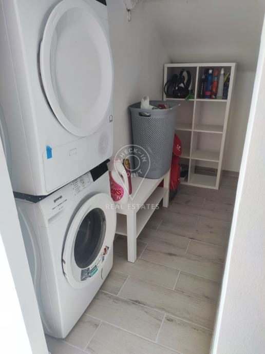 Stan se sastoji od ulaza, kuhinje, dnevne sobe, vece i manje (djecje) spavace sobe, kupaonice, male smočnice.