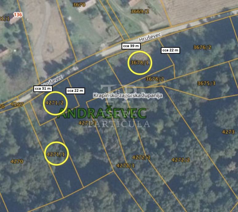Na prodaju je gradilište od 597 m². Bez tereta, 1/1. Nalazi se nasuprot kuće na adresi Hruševac 136, Donja Stubica. Na prodaju su po 15 €/m², odmah do, još dva gradilišta (852 m² i 900 m²).