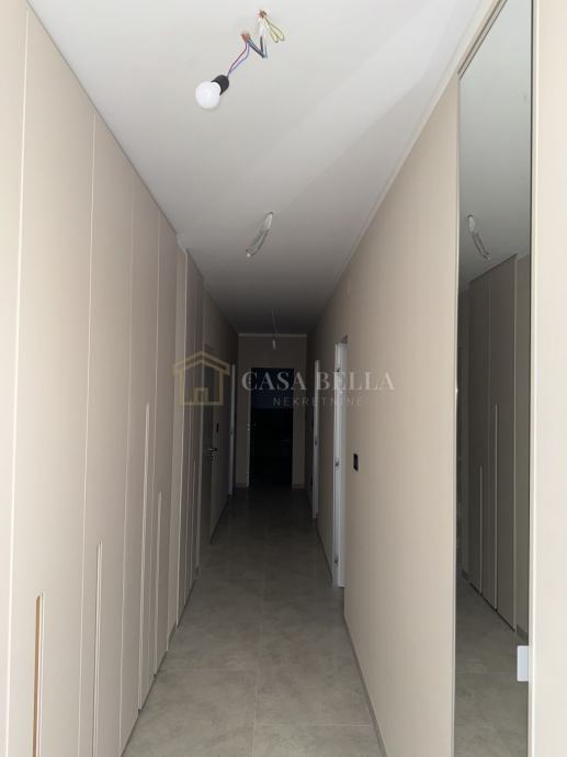 Ovaj elegantni i komforni stan se sastoji od 3 spavaće sobe, 2 kupaonice, prostranog dnevnog boravka sa kuhinjom iz kojeg se izlazi na veliku terasu sa pogledom na more ukupne kvadrature 123m2. Stanu pripadaju 3 parkirna mjesta.