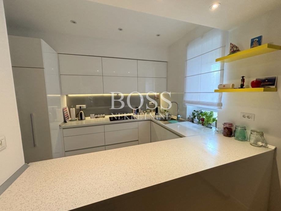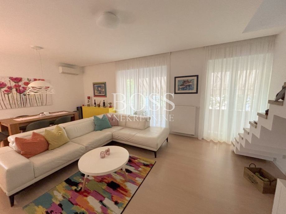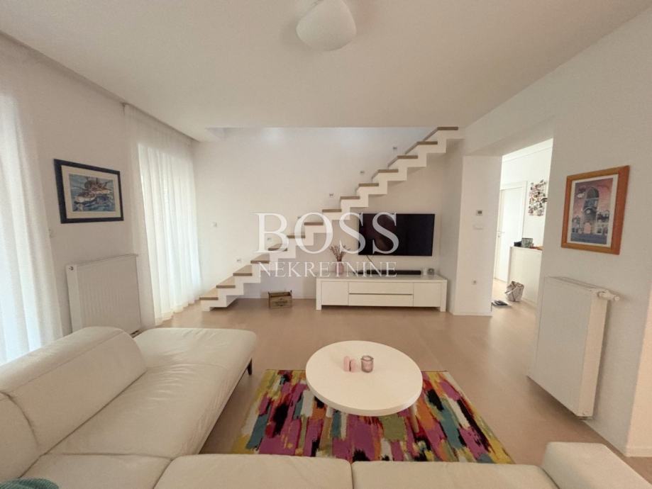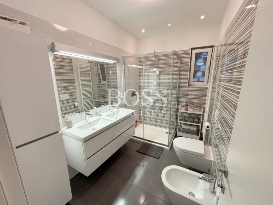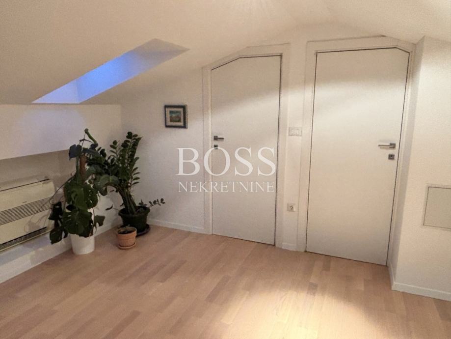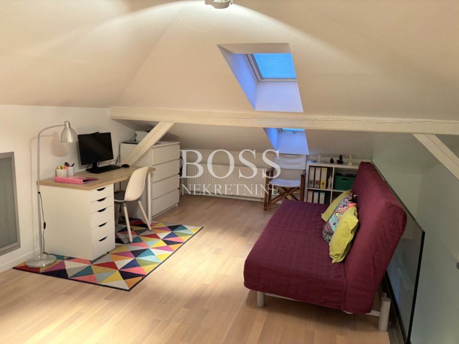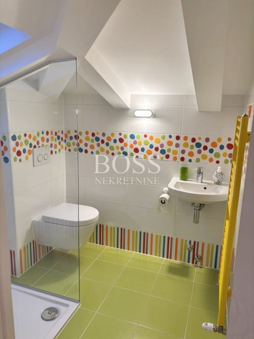 Dvoetažni stan na odličnoj lokaciji u Donjoj Vežici, ukupne površine 183,44m², smješten na prvom katu uredne kuće s tri stambene jedinice, predstavlja savršen spoj prostranosti, funkcionalnosti i udobnosti. Prodaje se potpuno namješten, spreman za useljenje bez dodatnih ulaganja. Prva etaža oduševljava prozračnim open space konceptom koji objedinjuje dnevni boravak, kuhinju i blagovaonu, stvarajući idealan prostor za obiteljski život i druženja. Na istoj etaži nalaze se tri velike i svijetle sobe, dvije moderno uređene kupaonice, te praktična ostava. Na drugoj etaži, u ugodnom potkrovlju, smješteni su radna soba, dodatna kupaona, vešeraj i spremište – savršeno rješenje za miran rad od kuće ili dodatni privatni prostor. Stan je izvrsno orijentiran: dnevni boravak i jedna dječja soba imaju izlaz na sunčani južni balkon, druga dječja soba na zapadni balkon, dok je master soba okrenuta prema istoku, te nudi dodatni luksuz kroz vlastitu walk-in garderobu i privatnu kupaonu s tuš kabinom. Udobnost stanovanja dodatno osiguravaju centralno etažno grijanje na plin, te klima uređaji u svim prostorijama, uključujući i potkrovlje. Stan i krov su u potpunosti renovirani 2015. godine, a nova fasada izvedena je 2016. godine. Stanu pripadaju dva parkirna mjesta, a lokacija nudi sve što je potrebno za kvalitetan život – u neposrednoj blizini nalaze se vrtić, škola, trgovački centar te prekrasne plaže na Pećinama. Ova nekretnina idealan je izbor za obitelj koja traži prostran, funkcionalan i elegantan dom na traženoj lokaciji. Boss, kontakt: 091/556-9697 Jelena, 091/500-7578 Đuro