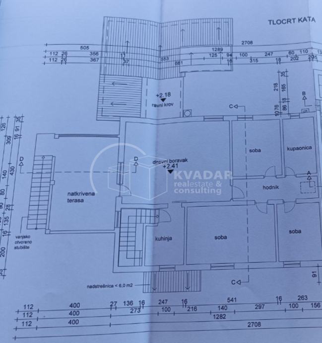 - 1. kat: DB + blagovaonica, 3 spavaće sobe, kuhinja, kupaona + wc, hodnik, natkrivena terasa