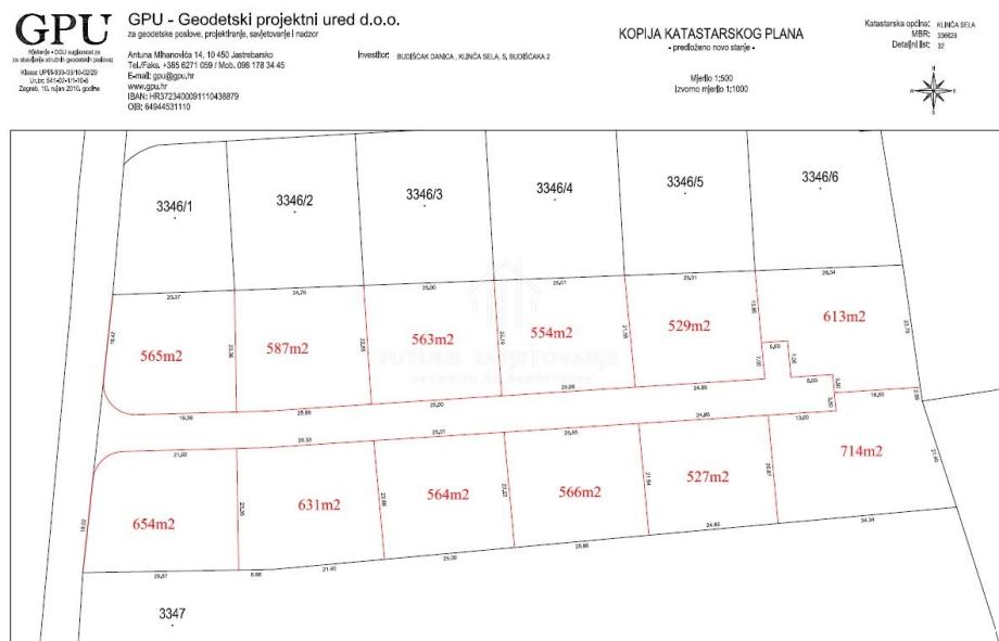 PARCELE: 1) 565 m2, 2) 587 m2 3) 563 m2 4) 554 m2 5) 529 m2 6) 613 m2