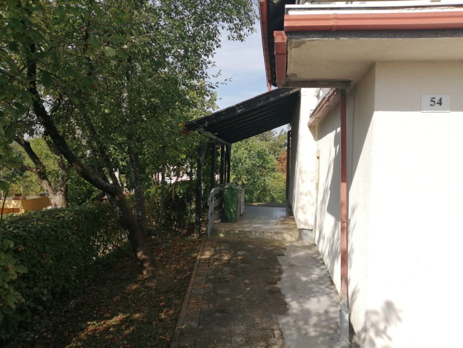 Okućnica je ravna, 388 m2, tako da imate puno mjesta za vrt. Trenutno se u okućnici nalazi jako rodna smokva, jabuka i šljiva. Također imate i vrtnu kućicu koja može poslužiti kao mjesto za druženje čak i po zimi, pošto ima rasvjetu i električnu grijalicu. Vanjski roštilj i velika terasa sa tendom za zaštitu od sunca i kiše.