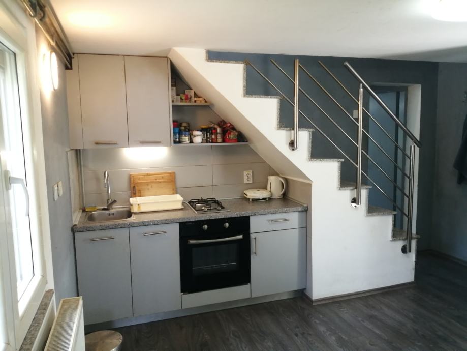 U prizemlju se nalazi velika spavaća soba, kuhinja/dnevni boravak, kupaona sa wc-om.