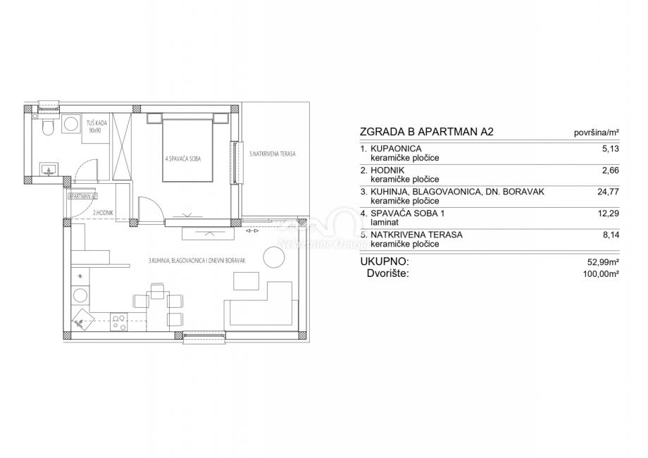 ukupna stambena površina: 52,99 m²