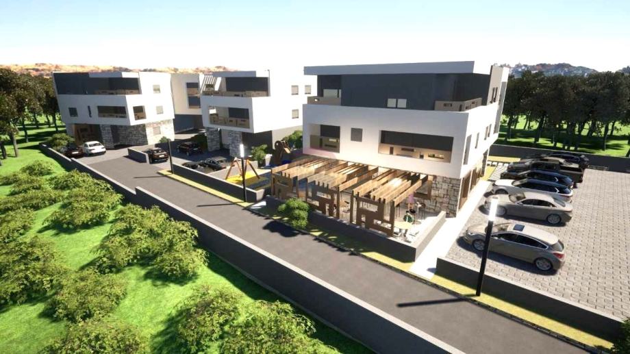 Ulaz u stan je iz zajedničkog stubišta, a sastoji se od kuhinje s blagovaonicom i dnevnog boravka (otvoreni koncept) s izlazom na terasu, dvije spavaće sobe i kupaonice, a stanu pripada i vanjsko ne natkriveno parkirno mjesto...