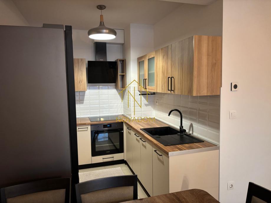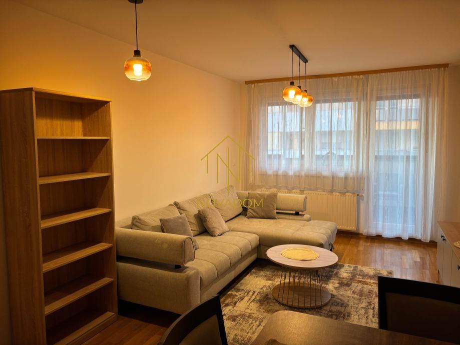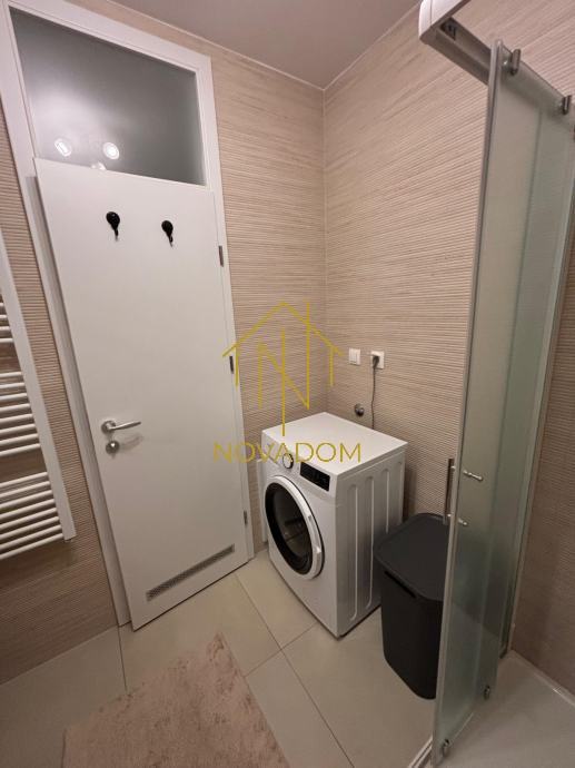 Iznajmljuje se moderan te kompletno namješten i opremljen 2s stan od 60m2 na VI katu u kvalitetnoj novogradnji (2022.g.) Stan se sastoji od: ulaznog prostora i velikog ugradbenog ormara, open space dnevnog boravka sa blagovaonom i kuhinjom, prostrane spavaće sobe s ormarom, kupaone s wc-om i natkrivene loggie.