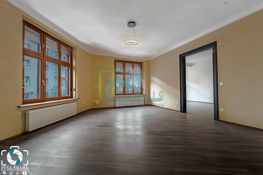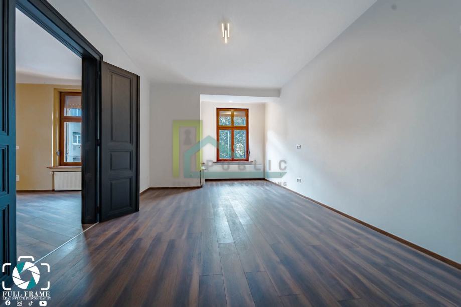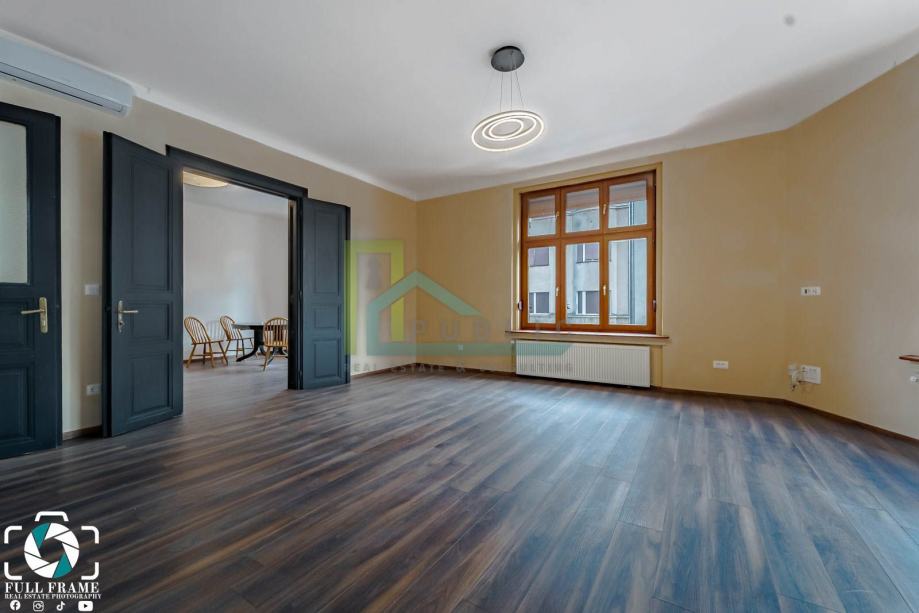 Tlocrt i video šetnju šaljemo na upit. Za prodaju prekrasan novo uređen / potpuno adaptiran 3.5 soban staro građanski stan u Savskoj ulici u neposrednoj blizini HNK. U stanu je kroz 2023. adaptirano: instalacije (voda, struja, plin), novi kondenzacijski bojler, betonska deka po podu. Stan se nalazi na 1. katu stambene zgrade bez lifta. Tri velike sobe gledaju na jug i zapad a ostale prostorije prema svjetlarniku zgrade. Visina stropa 3 metra. Grijanje u stanu je etažno centralno plinsko. Stan se sastoji od: - hodnik, - dnevni boravak, - 2 spavaće sobe, - mala radna soba, - kuhinja s izbom, - balkon, - kupaonica, - wc, - spremište u podrumu zgrade. Vlasništvo je uredno 1/1. Stan je etažiran.