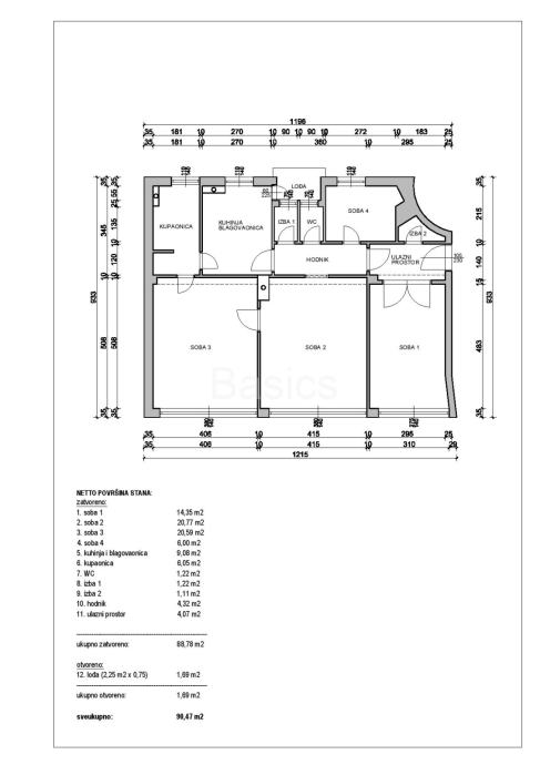 Izrazito prostran i funkcionalan prostor koji se sastoji od hodnika, tri velike i jedne manje (djevojačke) sobe, kuhinje s blagovaonicom te izlazom na balkon, kupaonice, odvojenog toaleta i dvije pomoćne prostorije pogodne za garderobu, ostavu ili arhivu...