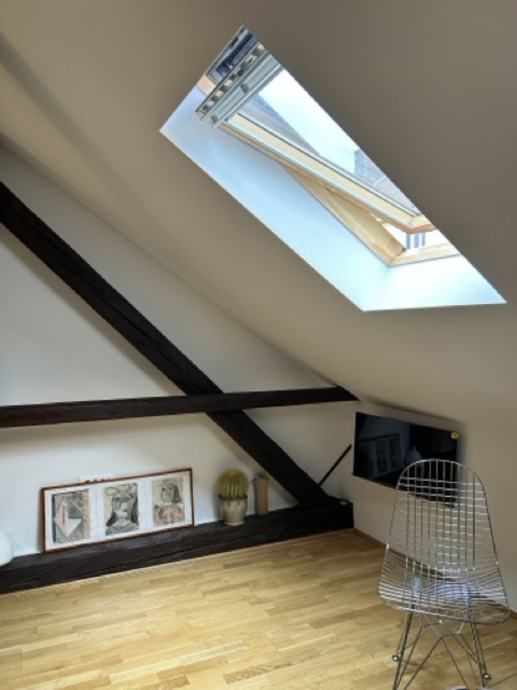 Iznajmljuje se potpuno nov, moderno uređen stan površine 45 m², smješten na 2. katu potkrovlja zgrade u Ilici.