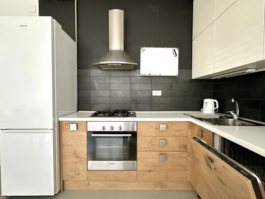 The apartment consists of a hallway, living room with kitchen and dining room, 2 large bedrooms, bathroom, toilet and 2 balconies.