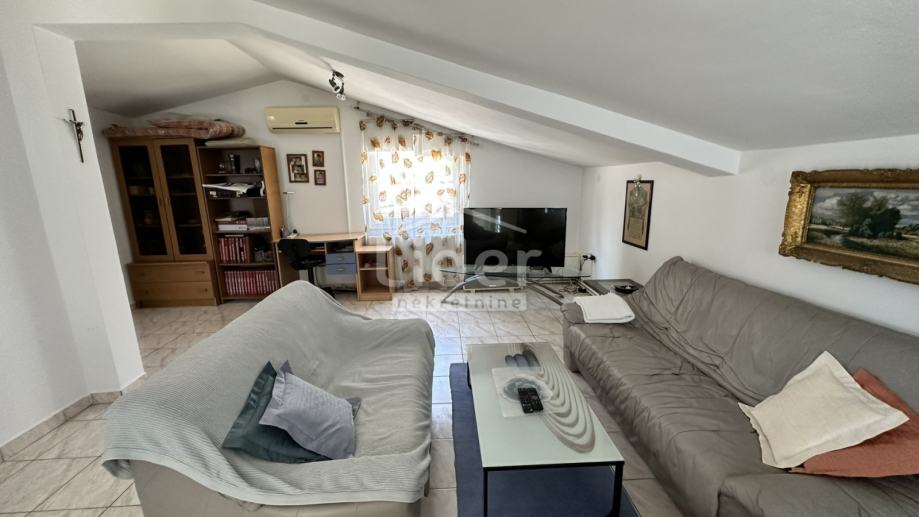 Donji Karin - na samo 90m od mora i plaže prodajemo gornji dio etažirane samostojeće kuće, sveukupne korisne površine od 143 m2 s pripadajućim dvorištem (45,00m2).
