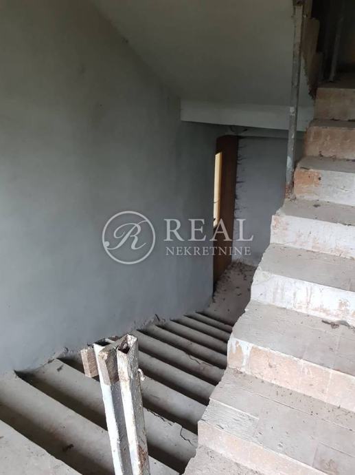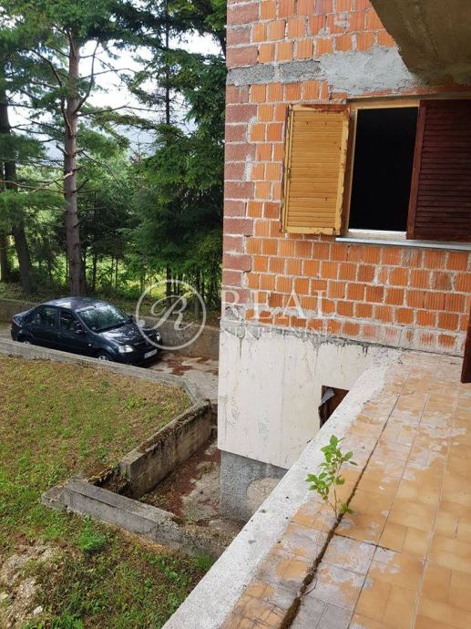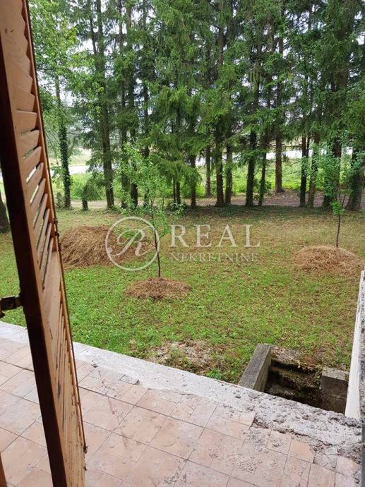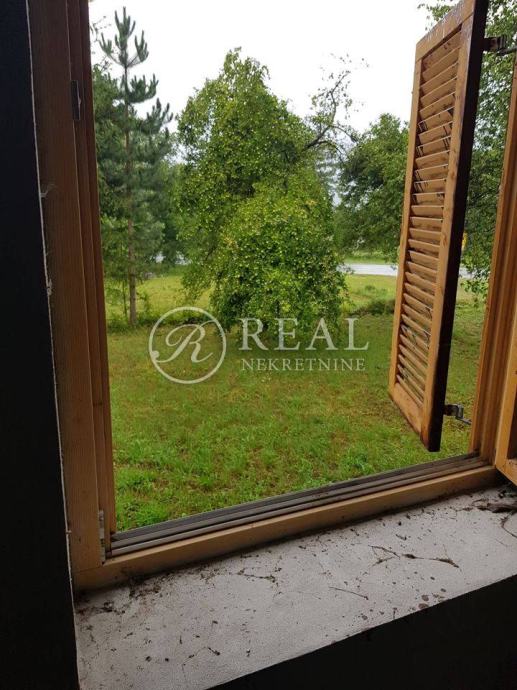 Kuća u nerpsrednoj blizini centra površine 300 m2,koja se sastoji od prizemlja(garaža i konoba),na katu stan površine 133 m2 koji se sastoji od tri spavaće sobe,dnevnog boravka,kupatila te balkona,u visokompotkrovlju stan 100 m2 u rou bau,okučnica sva u zelenilu površine 802 m2.Dokumentacija uredna.Udaljenost od Plitvičkih jezera 40 km.