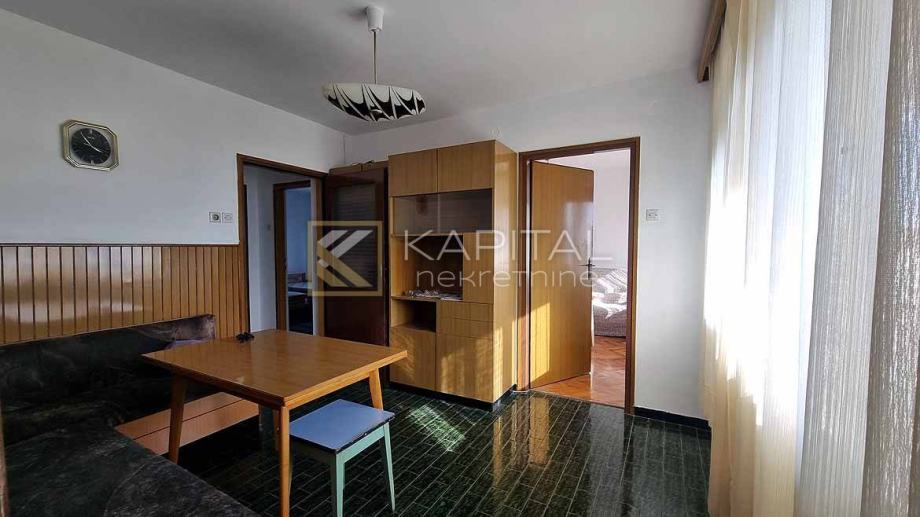 Donji Zamet, stan - etaža s predivnim pogledom na more na prvom katu. Stan je 2s + db s balkonom, s tim da je cijeli dnevni prostor južne orijentacije. Sve je jako uredno, ali potrebna je modernizacija. Drugi stan je uredna garsonjera u suterenu. Za sve informacije nazovite 091/450-5150