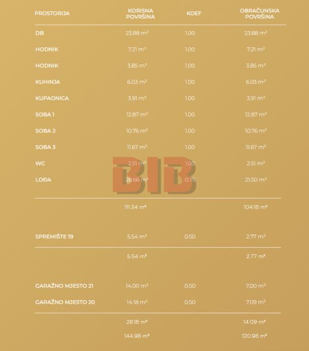 (neto) površine 14,18 m2 (korisne vrijednosti površine 7,09 m2 ) sveukupne korisne površine 120,98m2.