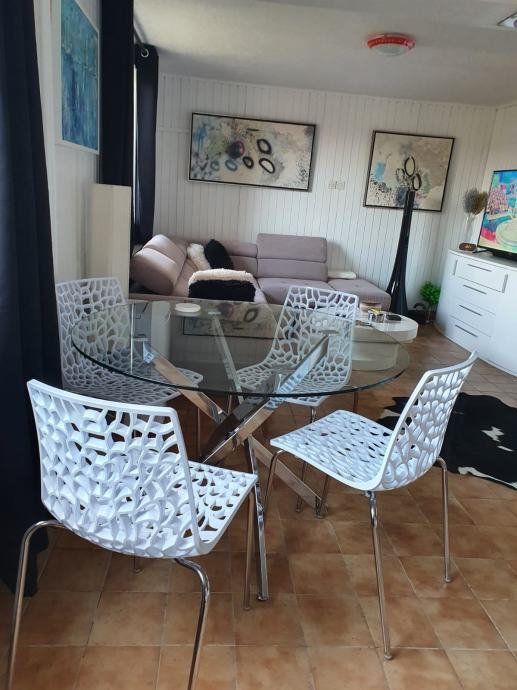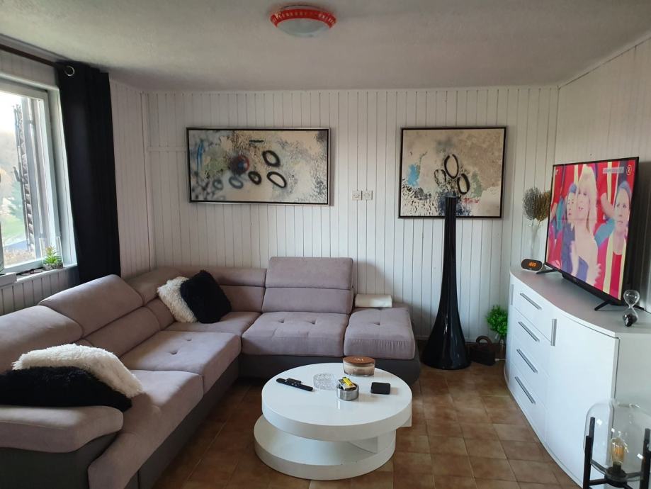 Kuća se prodaje kompletno namještena ( tri nova televizora, novi fržider, nova kutna garnitura, nove komode, dva nova bračna kreveta, novi ormari napravljeni po mjeri, trimer, rošilj.... ).