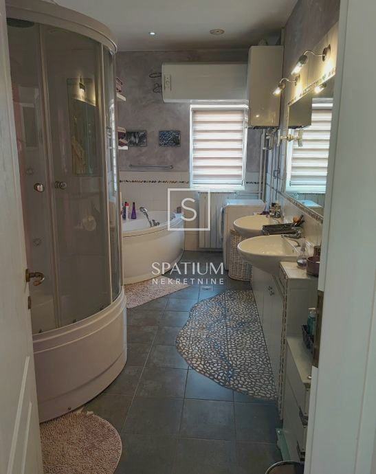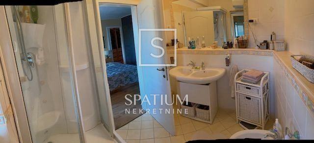 Na gornjoj etaži se nalaze glavna spavaća soba s "walk-in" ormarom, i vlastitom kupaonicom i balkonom; sekundarna spavaća soba s balkonom, spavaća soba za goste, i velika kupaonica; veliko potkrovlje.