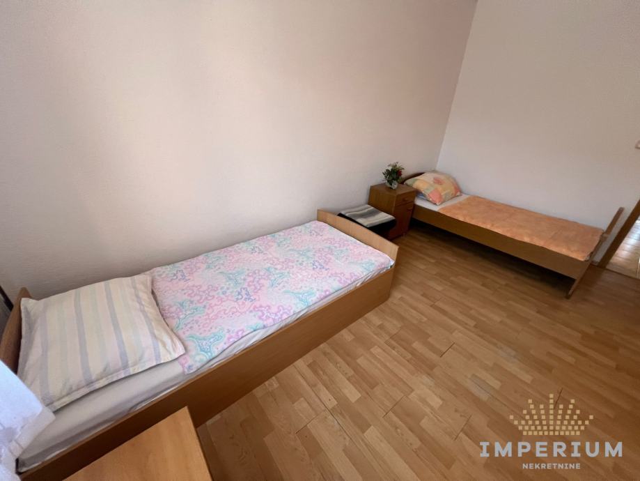 Stan se nalazi u prizemlju kuće, ima cca 80 m2, a sastoji se od dvije spavaće sobe (u jednoj sobi su 2 kreveta za jednu osobu, a u drugoj sobi su 3 kreveta za jednu osobu), dnevnog boravka, kuhinje s blagovaonom i kupaonice.