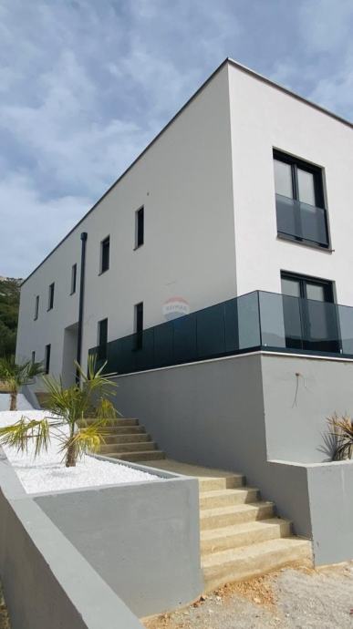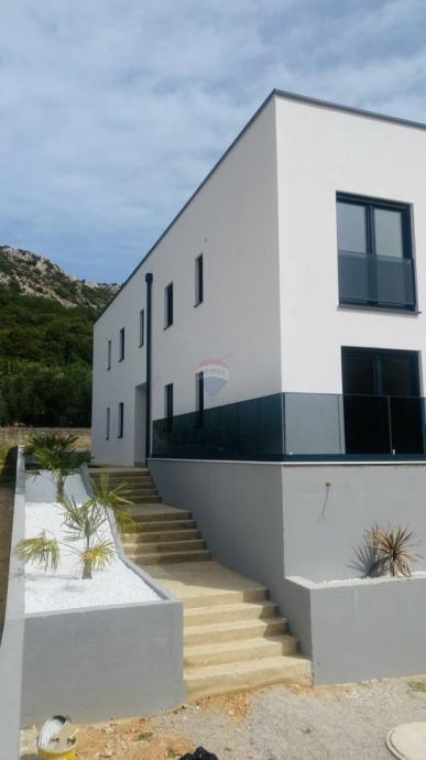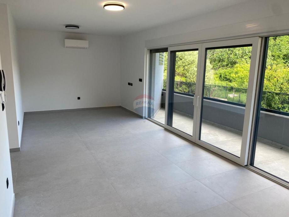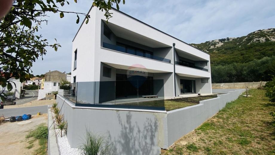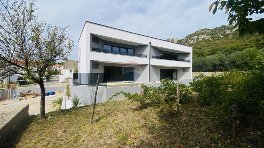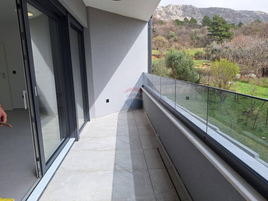 BAŠKA - DRAGA BAŠĆANSKA -NOVOGRADNJA - na udaljenosti 4 km od mora, u malom šarmantnom mjestu prodajemo u modernoj novogradnji stan na prvom katu, 62m2. Stan ima u vlasništvu dva parkirna mjesta. Stan se sastoji od prostrane kuhinje i dnevnog boravka 30,24m2, sobe 9,12m2, sobe 8,72m2, kupatila 3,58m2, te natkrivene terase 10,33m2, te spremište. Stan je prozračan i svijetao, južno orijentiran. Stan je građen po najsuvremenijim standardima, ugrađeni kvalitetni materijali, moderne sanitarije i keramika, te kvalitetni podovi. Stan se prodaje nenamješteni, tri kvalitetna klima uređaja, ima podizače roleta. Uporabna dozvola. Agent je u Baški. Lj.magasic@remax-krk.hr +385916413143
