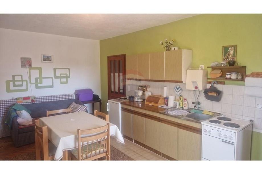 Kuća ima ulaze sa vanjske strane u sva tri apartmana, koji su otprilike oko 50 m2 stambene površine, plus terase.