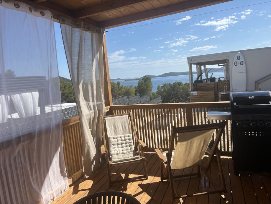 Prodaje se nova mobilna/ montažna kućica, na atraktivnoj lokaciji u novom kampu, koji je otvoren cijele godine u mirnom mjestu Drage- Pakoštane sa prekrasnim pogledom na more. Sastoji se od dvije spavaće sobe, potpuno opremljene kuhinje, dnevnog boravka i kupaonice, te komforne natkrivene terase veličine 32m2. Kucica je rađena po principu montažne kuće, izolacija zidova i stropa 20cm, poda 17cm. Pogodno za cjelogodišnji boravak. Udaljenost od plaže 60m, od uvale Porat 300m. Slobodno kontaktirajte za više informacija i razgledavanje.