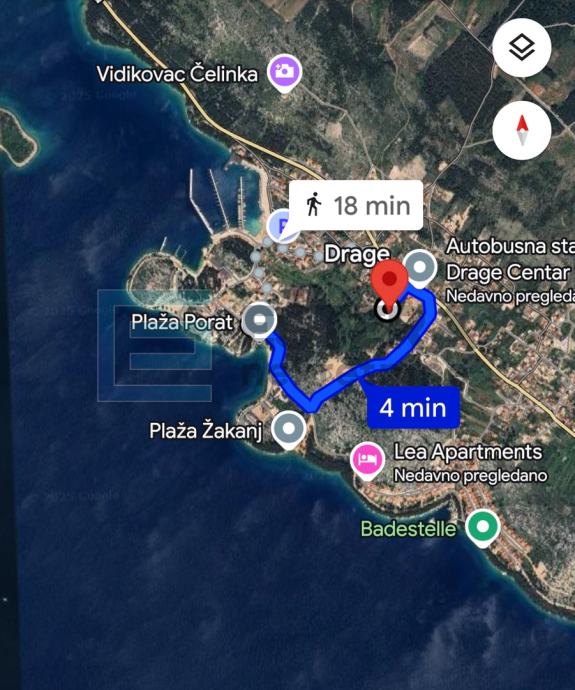 - Udaljenost do plaže: cca 1 km pješice, 4 minute autom, 400 m zračne linije