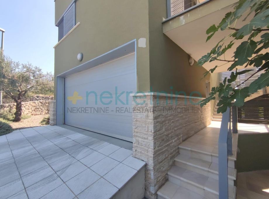 Kuća ima prostranu garažu s dovoljno mjesta za dva automobila, s direktnim ulazom u kuću. Garaža je opremljena sustavom za automatsko otvaranje, a ispred garaže je dodatni parking prostor za goste. Garaža ima i skladišni prostor.