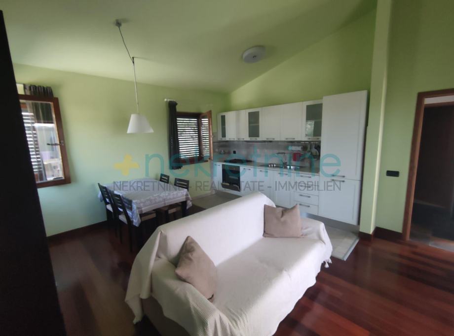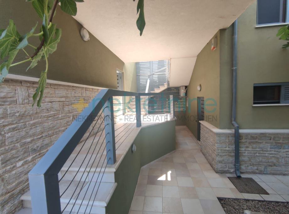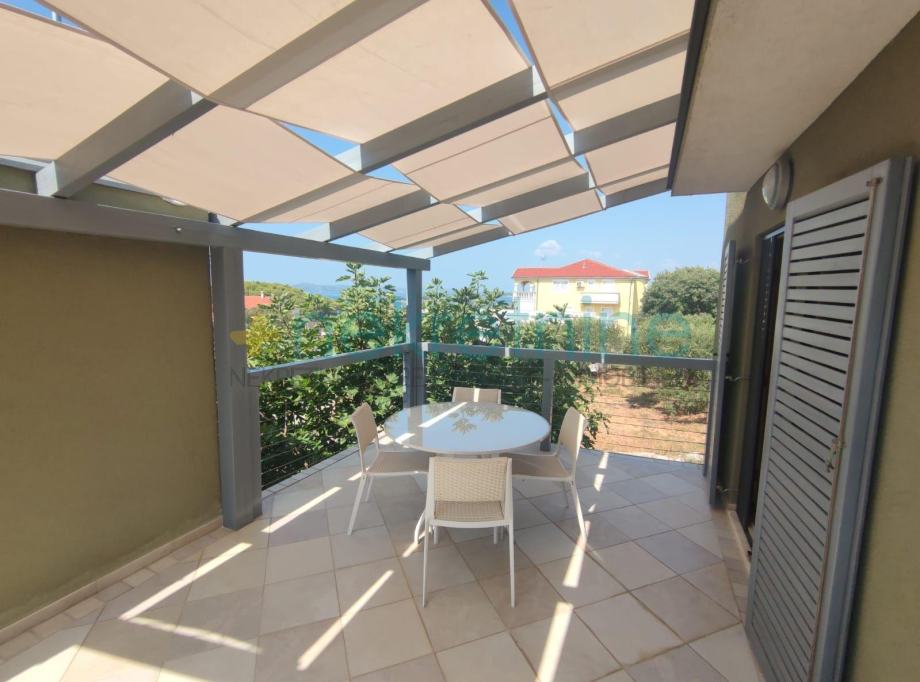 Iznad garaže na prvom katu nalazi se elegantni jednosobni stan sa svojom terasom i pogledom na more.