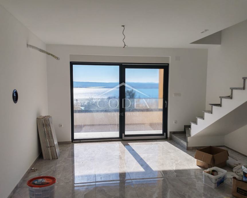 Smještena na mirnoj i atraktivnoj lokaciji u Dramlju, svega nekoliko minuta lagane šetnje od morske obale, ova moderna novogradnja predstavlja savršen spoj suvremene arhitekture i funkcionalnosti. Stan je koncipiran kao dvoetažna stambena jedinica, što stanarima pruža osjećaj boravka u kući u nizu, osiguravajući pritom maksimalnu privatnost i komfor. Zahvaljujući svojoj poziciji, nekretnina nudi očaravajući panoramski pogled na more koji dominira prostorom i stvara opuštajuću mediteransku atmosferu.