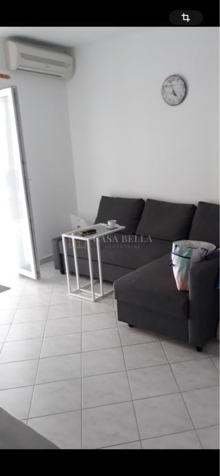 Nekretnina se sastoji od ulaznog hodnika, kuhinje povezane s dnevnim boravkom, kupaonice te prostrane lođe površine cca 7 m², koja predstavlja dodatni prostor za boravak i opuštanje. S lođe se pruža lijep pogled na more, što dodatno povećava atraktivnost stana.