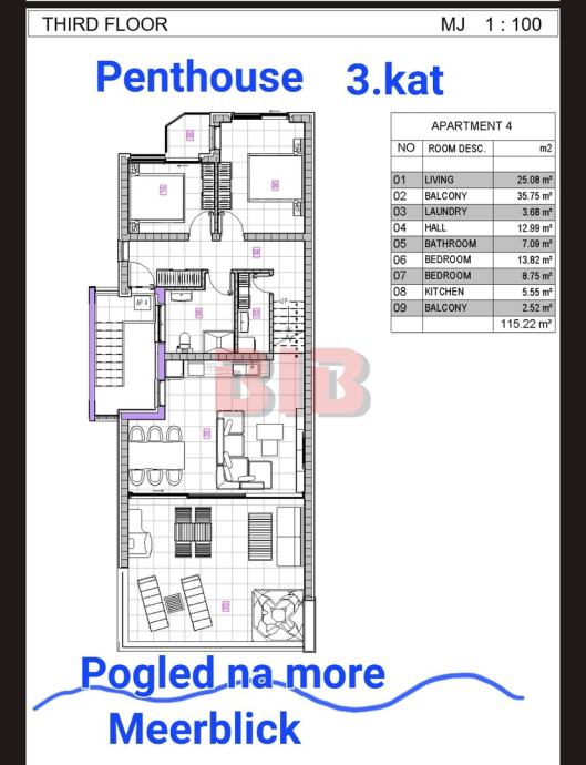 DRAMALJ-KAČJAK ,LUKSUZAN PENTHOUSE,150 METARA OD MORA (prodaja)