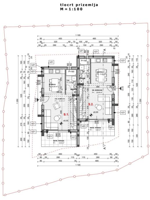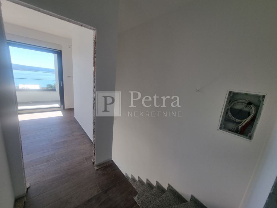 Dva dvoetažna stana u okućnici od 320 m2. U prizemlju jednog i drugog stana se nalazi dnevni boravak, kuhinja, kupaonica i terasa. Na katu su dvije spavaće sobe, kupaonica, hodnik i loggia sa koje se pruža prekrasan pogled na more.